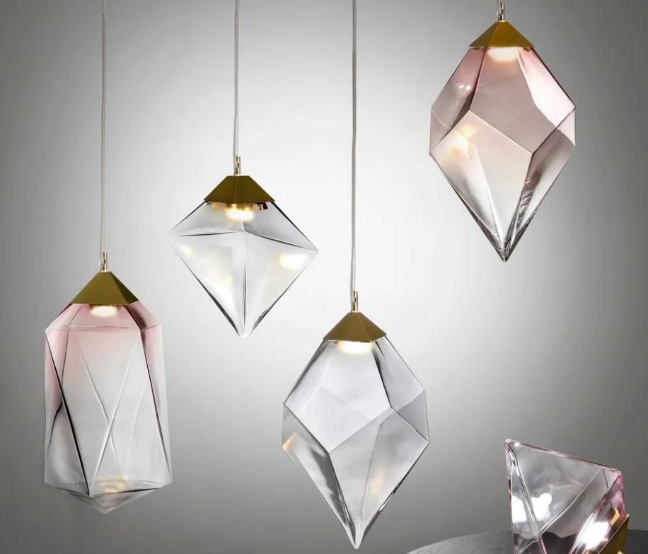 One popular take on the Organic Shapes trend has been crystalline shapes. Many fixtures reference the shape of quartz or other stones. Giving the design an earthy and natural appearance instead of the more traditional cut glass lighting options.