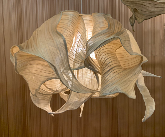 This season the lighting designs are pairing the woven textures with contrasting materials and applications of color to make a bolder statement.